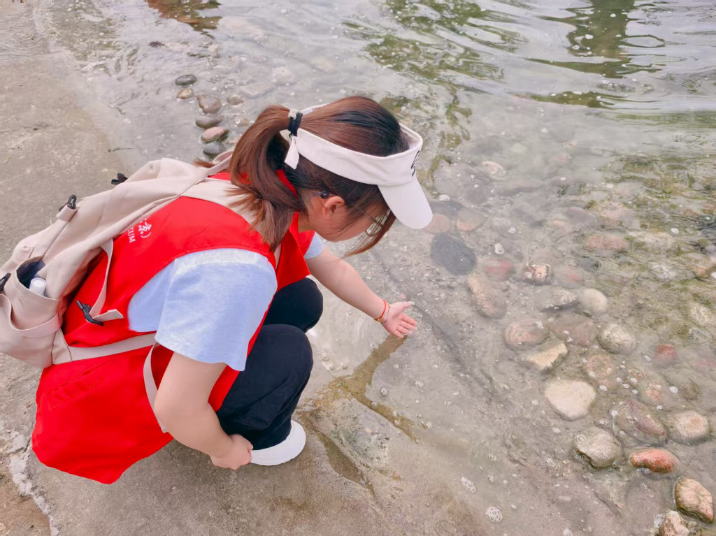 实践队首先抵达滹沱河主要流域。晨光下,河面波光粼粼,两岸植被茂密,形成水清岸绿、鸟类栖息的良好生态景观。不少儿童在亲水平台周边玩耍,河岸附近分布着各类经营泳具、冷饮和特色小吃的摊位,呈现出有序的滨水经济氛围。一位售卖泳具的商户表示,水质改善后游客增多,生意也有所好转。来自天津的游客张先生认为,滹沱河水质清澈、环境舒适,已成为石家庄的一张生态名片。