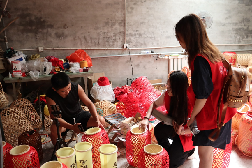 8月31日,实践团聚焦藁城区屯头村宫灯非遗技艺。队员们参观屯头宫灯博物馆,了解了从秦汉灯具雏形到清代宫灯兴起的演变历程。在福旺工艺品工厂,团队成员与负责人张先生深度交流,了解现代宫灯在电商渠道、文创融合中的机遇与挑战。“我们试着融入国潮元素和热门IP,吸引年轻人。”负责人坦言,“但如何平衡传统与创新仍是难题。”屯头宫灯的产业化探索,为非遗振兴提供了鲜活实践样本。